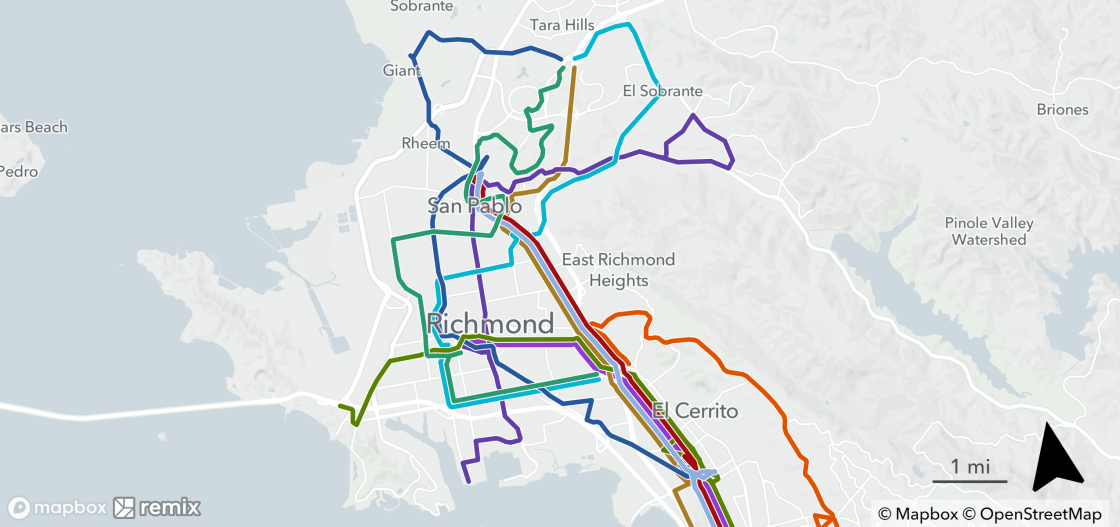 El Borrador del Plan Final Realign de AC Transit prioriza las líneas de autobuses que prestan servicio a las comunidades que dependen del tránsito, mejora la fiabilidad y optimiza la eficiencia del servicio, al tiempo que permite un posible crecimiento futuro. El Borrador del Plan Final sugiere varios tipos de cambios a nuestro servicio que incluyen el redireccionamiento de líneas, la combinación o posible eliminación de otras, y ajustes de frecuencia y horas de servicio. Todos los cambios propuestos para las líneas de autobuses están identificados en el Plan con la etiqueta "DF". Los siguientes son cambios propuestos para Richmond, San Pablo y las áreas no incorporadas de North Richmond, East Richmond Heights, El Sobrante y Kensington.
