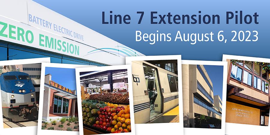 7 号线路已延伸服务至 Emeryville Amtrak 站,这是为期一年试点项目的部分内容,旨在恢复 80 号线路暂停后中断的 Ashby Avenue 沿线公交服务。7 号线路将通过 Bancroft Way、Durant Avenue 和 College Avenue 连接伯克利市中心与 Ashby Avenue 和 Emeryville。7 号线路延长服务将于 2023 年 8 月 6 日开始运营。